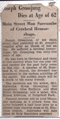 30, 1906. (Her name was misspelled on the cemetery record as Siblia Grossjung.) William died on Feb. 22, 1908 in Ridgefield