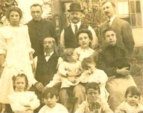 This is a picture with the family with E.G.'s partner, Felix Milhomme, and his son, Alex. Back row: Bella, Jules (E.G.'s brother), Mr. Millhome, E.G. himself. Middle row: Jacques Ernest (E.G.'s father), Antoinette with Howard and Lester, Helene, E.G.'s sister. Front row, subject to question: Rose, Paul or George, Alex Milhomme, Paul or Felix's other son, Paul Milhomme. NOTE: See also the page "La Famille 2001" (La Famille 2001) under the "French Roots" tab for more discussion on the family history and recent research in France.